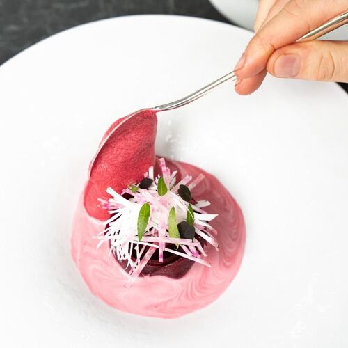Near Place Royale and the cathedral, this local culinary landmark has been treated to a contemporary makeover. It provides a perfect playground for two veteran fine food lovers: Benjamin Andreux, in the kitchen, and Delphin Cornaille, brilliantly in charge of the front of house. The chef unveils his ambitious vision of fine dining in which seafood features prominently: sautéed girolle mushrooms, apricots and elderflower; monkfish meunière, green peas, cherries and sauce Dugléré; Racan pigeon, a quenelle of puréed onion and a drizzled sauce. The epitome of intelligent creativity. Diners are greeted warmly and seamlessly, in line with the culture of its high-flying, experienced team.