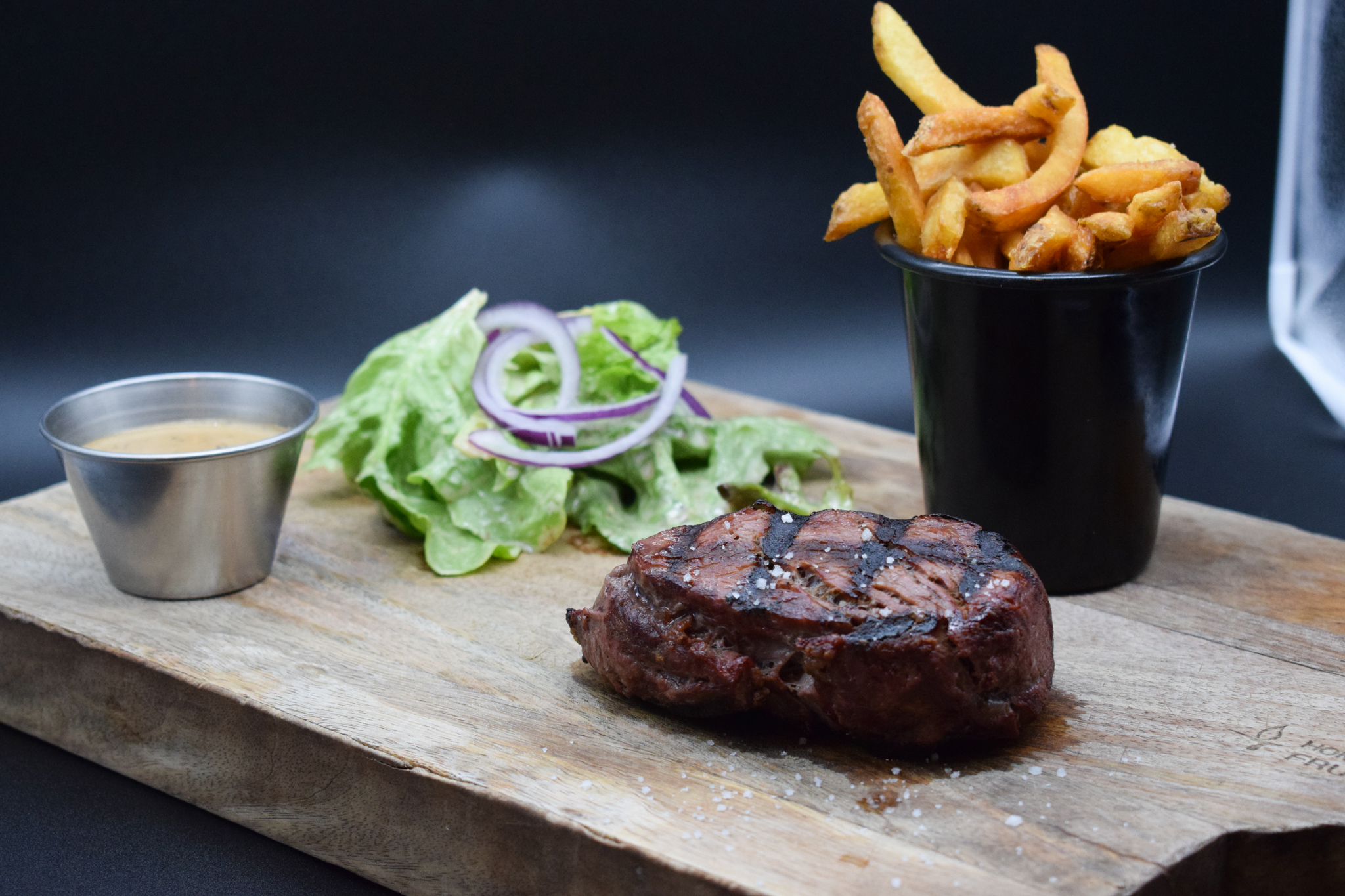 -tasteful food (we’ve got steak | ribs with fries and salad)