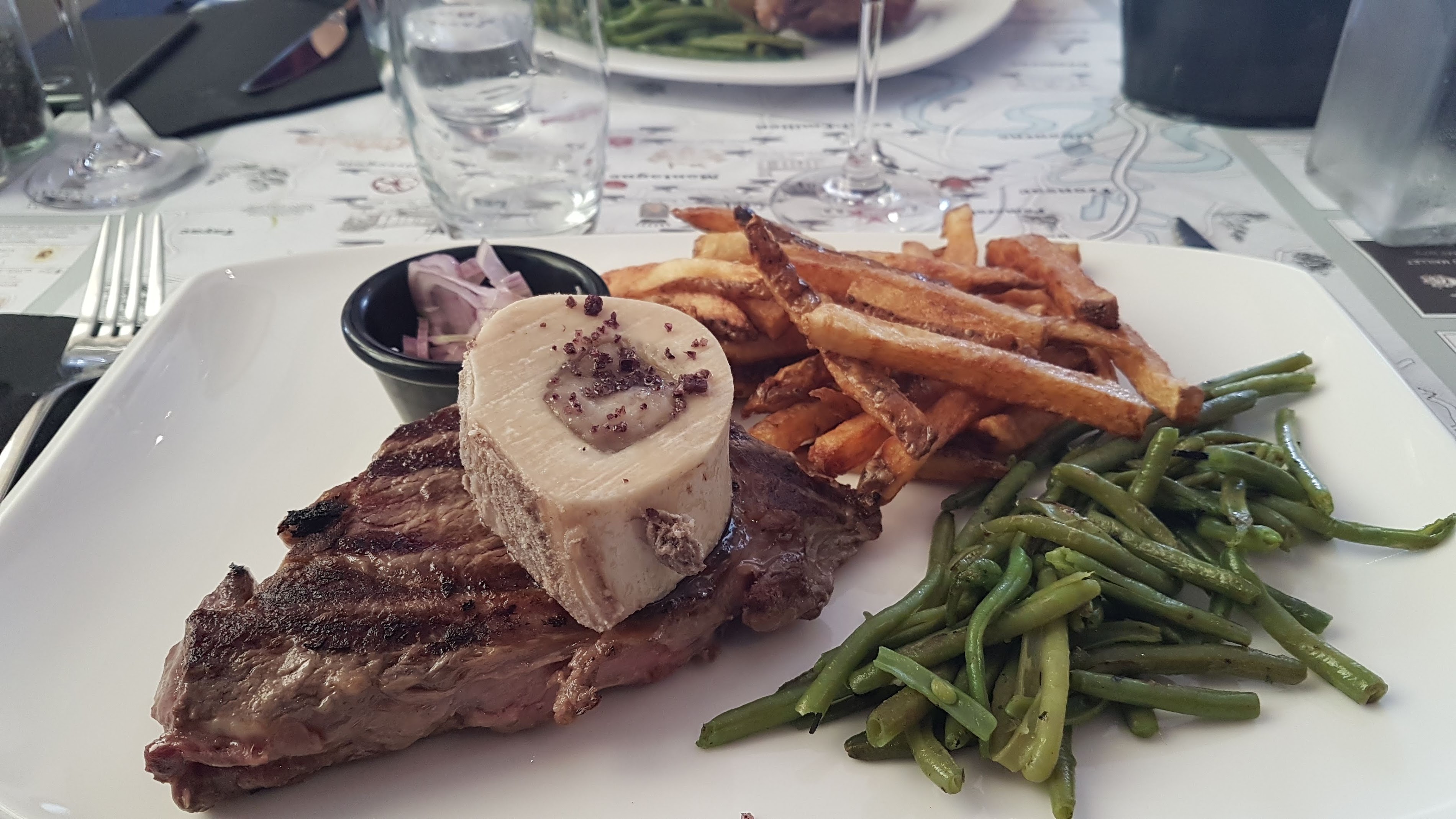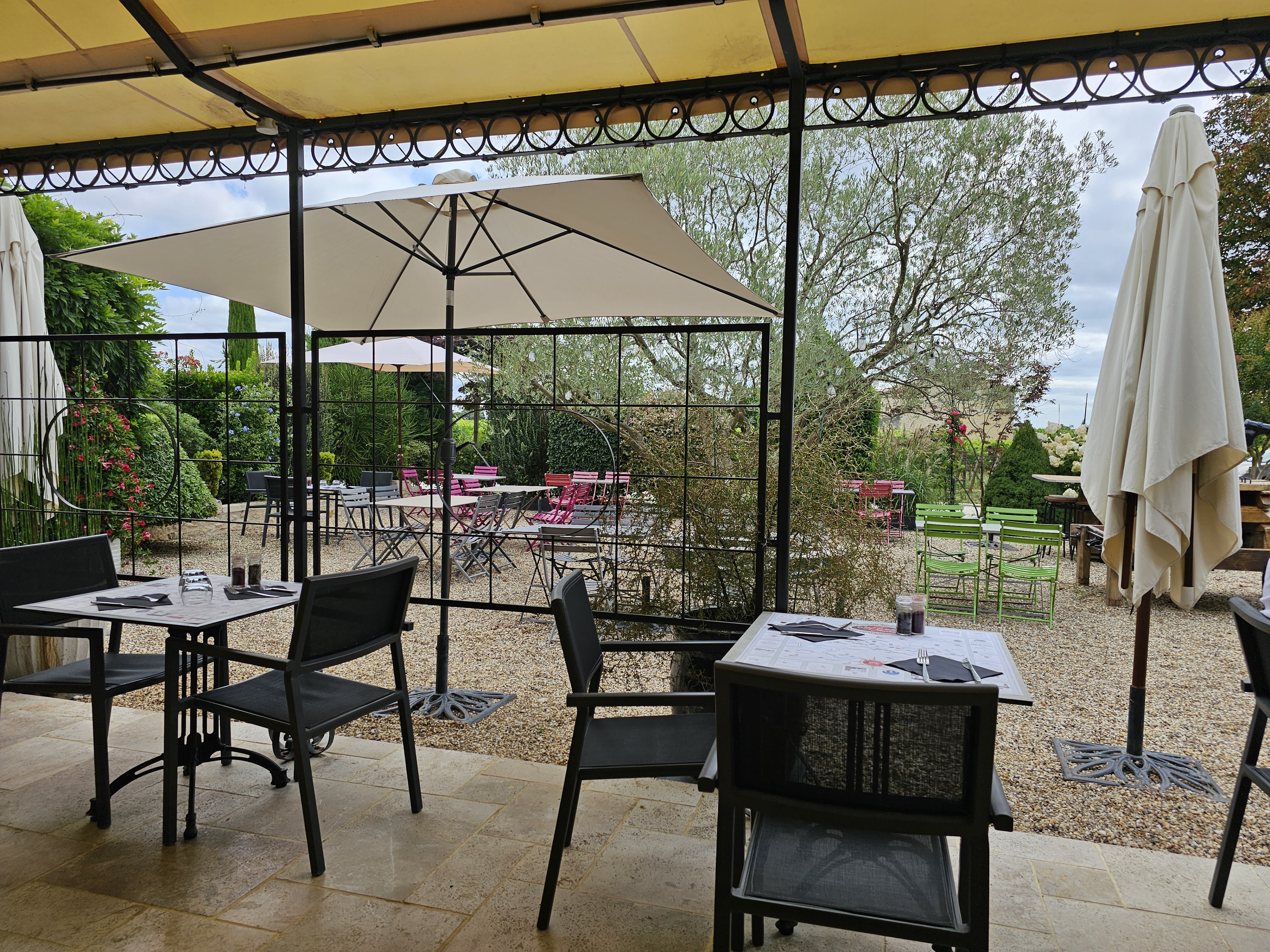I found a great little gem in Montagne, Saint-Emilion. The food was excellent, as was the service. My Rump steak dish was cooked perfectly (medium), and it was not tough but rather juicy. It came with an adequate amount of nicely fried thin chips and French style green beans. It was great! My wife's chicken dish was also excellent. The owner/waiter provided a great suggestion for a local red wine from Montagne (that went well with my Rump steak but also my wife's chicken dish), as well as a fantastic suggestion of a selection of cheeses for dessert. This place is a great place for tasty local French food that local people want to eat (and tasty local wines to go along with the great food), ... as well as us visitors to the area (wanting a change from gourmet styled affairs). I so recommend this restaurant (and I recommend asking the owner/waiter for suggestions - he speaks excellent English!). Great value for the money. Too bad the weather wasn't good enough to eat outside.