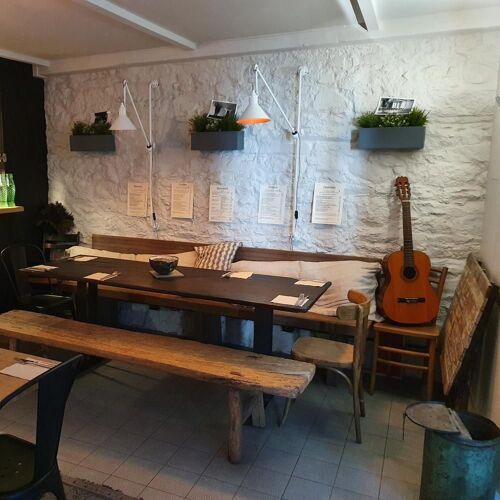 Opposite the Halle au Blé in Saint-Malo, this little crêperie is not to be missed. It serves classic galettes (buckwheat pancakes), as well as more original recipes: the "langouille" galette is with pork tongue; the "Grain Noir" with Breton trout, fresh goat's cheese, crunchy vegetables and lemon; the "Ty Nevez" with andouille from Dinan, egg, Emmental and mustard. They also serve hors d'oeuvre, such as chilli butter and raw cocoa nibs, and salted butter and seaweed tartar. Most of the ingredients are organic; the ciders and wines are natural.