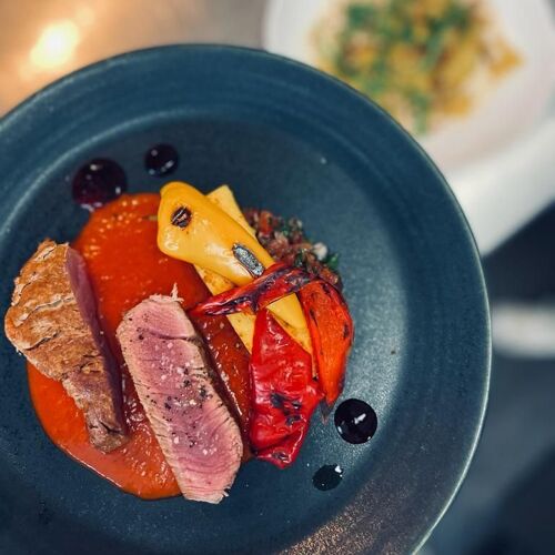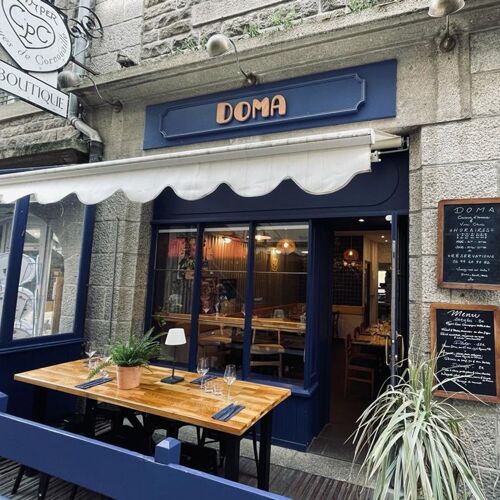 Within the city walls, a handful of tables set up on the pavement; inside, a compact, contemporary space with a corrugated iron wall section and the menu featuring on enamelled tiles: this house (doma in Slavonic) catches the eye and whets the appetite! Marinated sardine, crispy rice and salsa verde, followed by an open prawn ravioli, bisque and seaweed curry emulsion, and – the final flourish – a madeleine cake, nectarine compote and verbena cream. In short, colourful dishes that showcase the season (and are good value for money, too!).