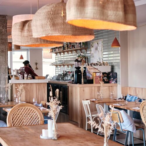 After a period of hopping from one time zone to another (Alain Passard, Corsica, Dan Barber's Blue Hill restaurant in the US), Bastien and Charlotte Guillochon's decision to set up shop opposite a port seemed entirely natural! Their "culinary house" (as they call it) is open from breakfast to dinner and has plenty of cosy corners. Each dish on the menu starts with the name of a vegetable or fruit: cucumber, shellfish ceviche, camelina oil; round courgette, spring carrot purée, chimichurri, rockfish seabream. This is modern cuisine that is respectful of the environment and devilishly well crafted.