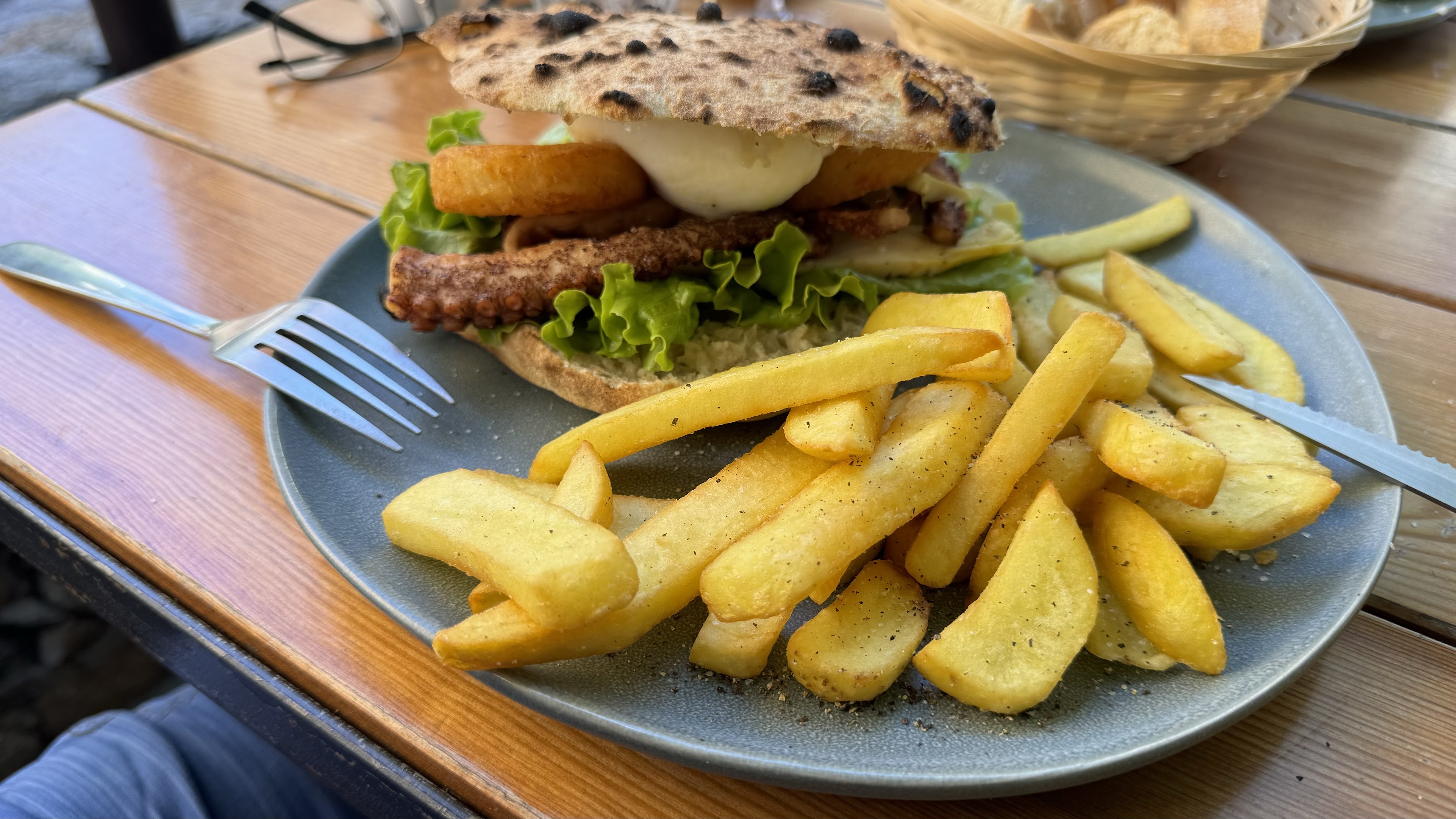 I was there with my wife. We liked. I ordered a burger and beer, my wife ordered lasagne and a mojito. The burger was very tasty and juicy, my wife also liked the lasagna. The tables on the summer terrace were cozy. The prices are normal, I recommend it.