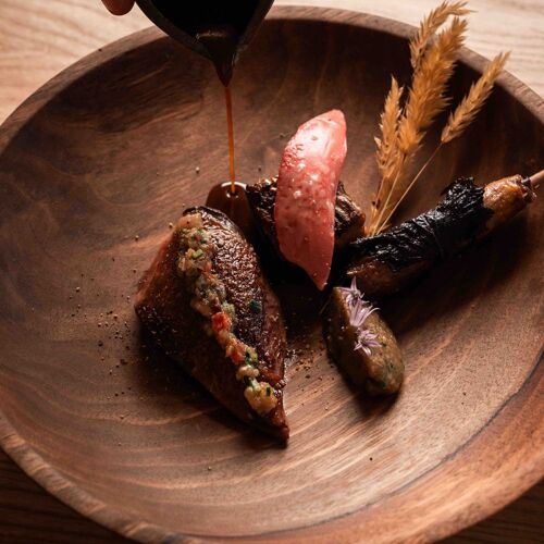 The beautiful exterior of this 18C manor house set in grounds gives little away. Inside, the 21C makes itself felt throughout the various dining nooks: designer furniture, original lights, white walls, wine cabinets. A place like this can only inspire Jérôme Dallet, a chef who has worked with Emmanuel Renaut (Megève) and Anne-Sophie Pic (Valence). Local produce is given pride of place (mogette beans, snails, Confolens lamb…) and the chef uses it to create wonderfully indulgent compositions. In fine weather, you can enjoy the terrace surrounded by greenery.