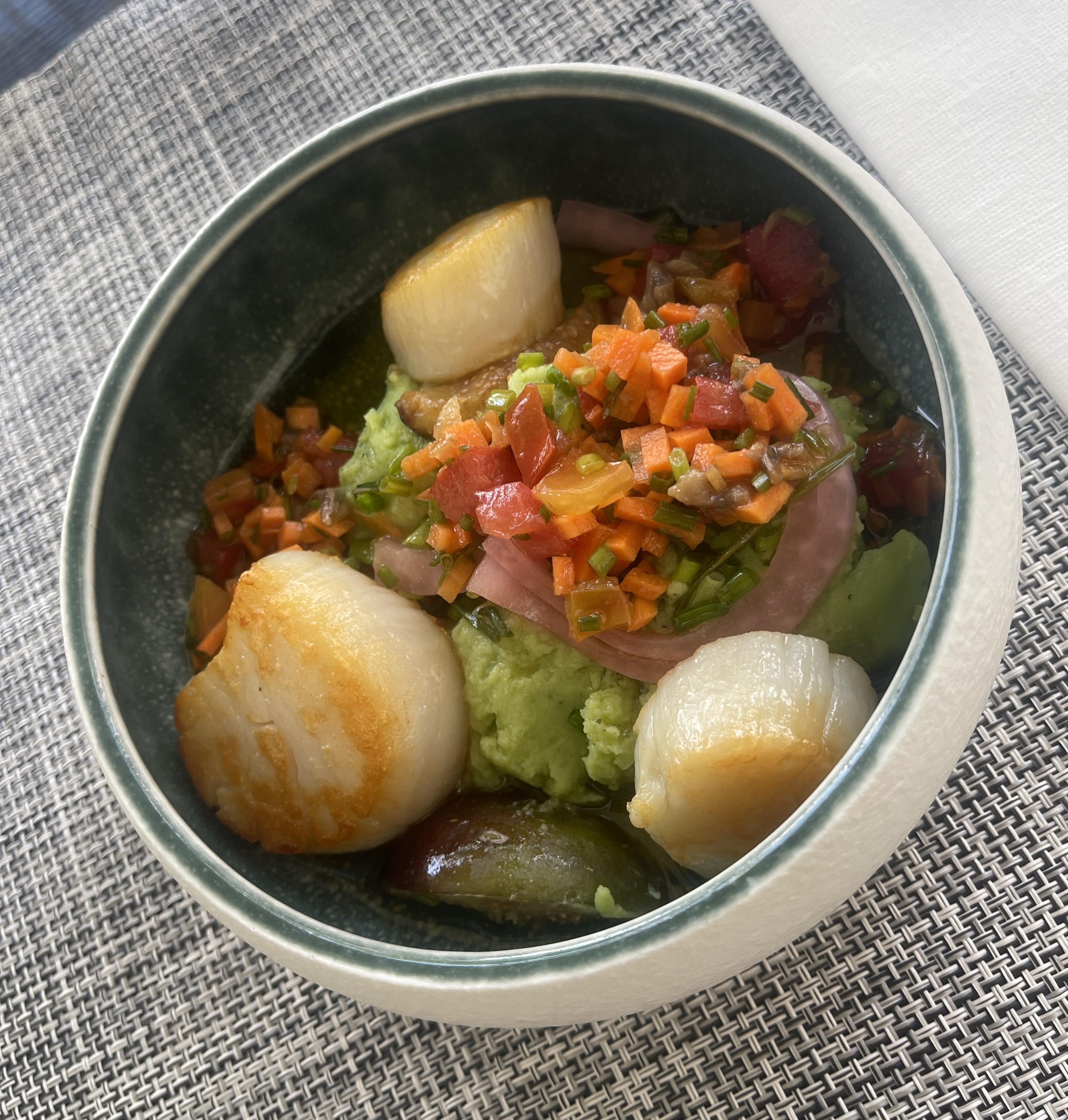 A very nice address, for those who like cozy atmospheres, beautiful decor with a magnificent patio and small body of water surrounded by plants. A beautiful menu and a menu at €27 that we chose. Very good starter, main course and dessert which changes every Thursday.