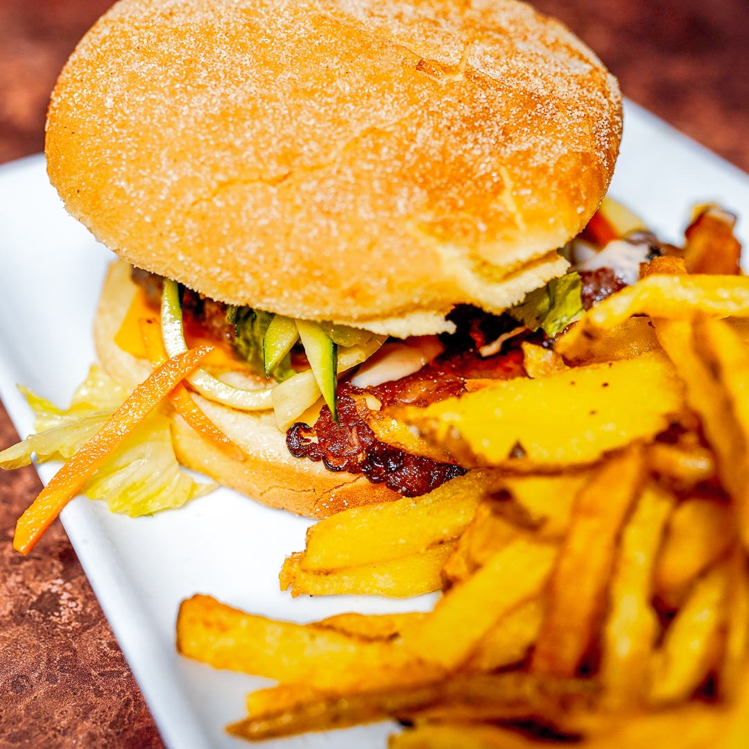 Cheap meat with cartilage, not medium as ordered, tons of readymade cheap mayo, terrible industry cheese (this is not cheddar!), at least fries were okish but super fat.