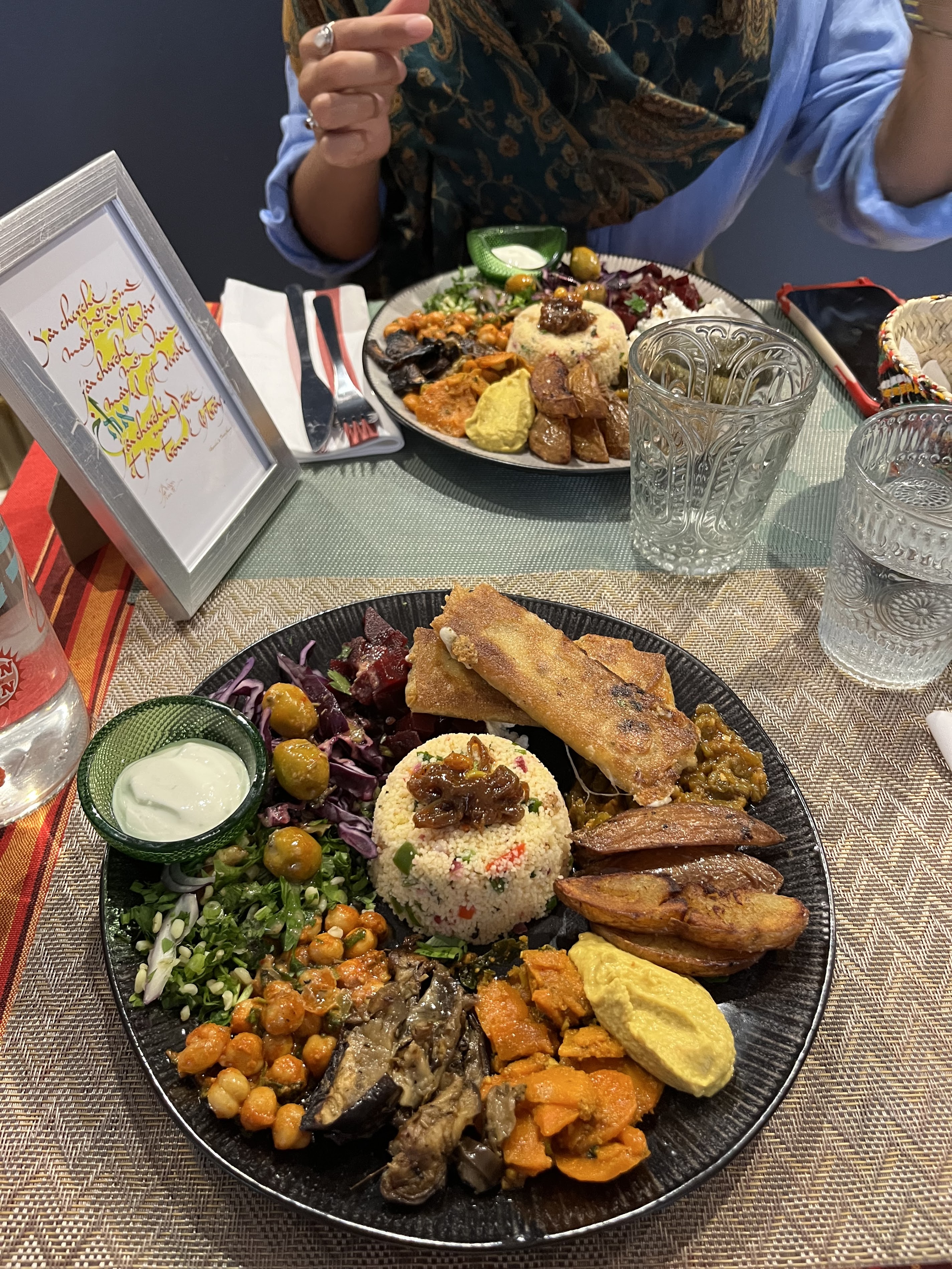 Perfect meal, wonderful attendant that spoke to us and had patience, kindness and hospitality. We were even offered the mint tea at the end. The food was wonderful, veggie assiette. We really recommend!