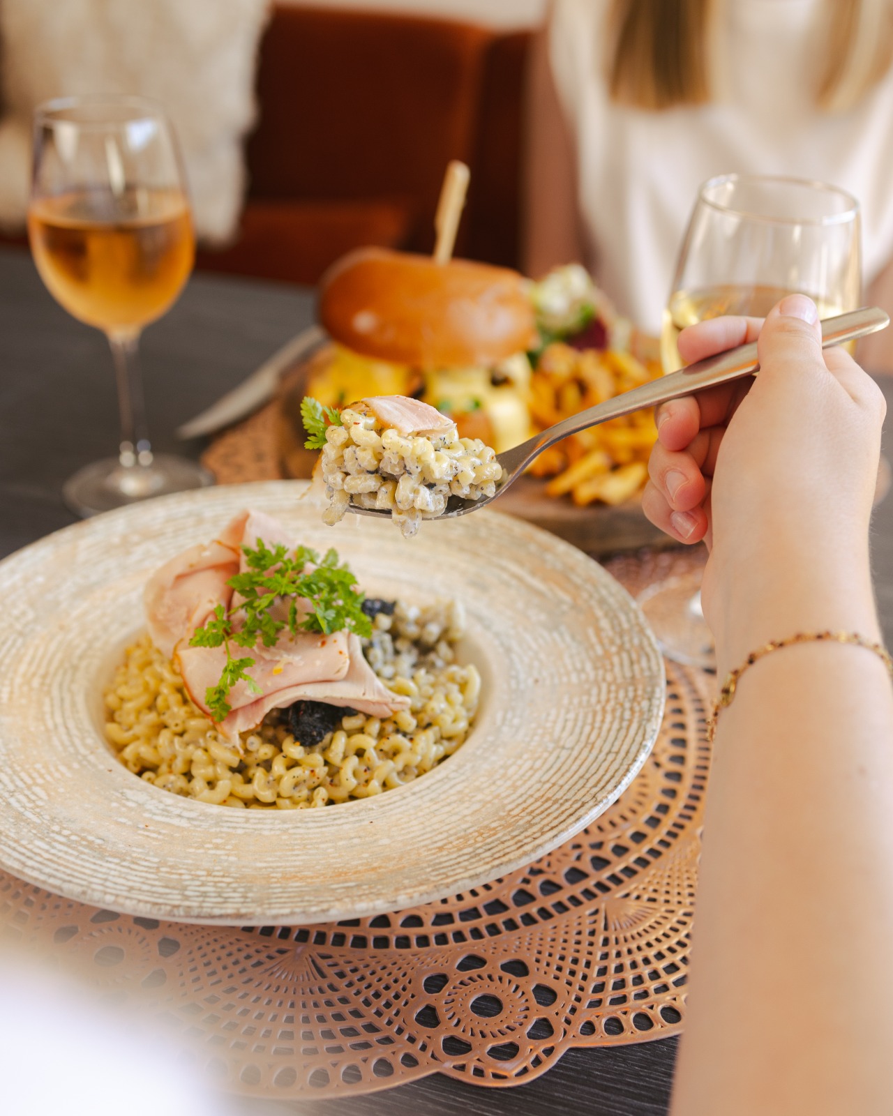 Regardless, the food was exceptional. We started with Moroccan bricks as our appetizer, accompanied by an excellent sauce. For our main courses, we chose the "Sexy Rigatoni" and the beef dish listed as tagliatelle, which surprisingly lacked pasta but nonetheless impressed with its blend of arugula, potatoes, and Parmesan. The rigatoni, featuring truffles, white sauce, Parmesan, and spinach, was simply amazing.