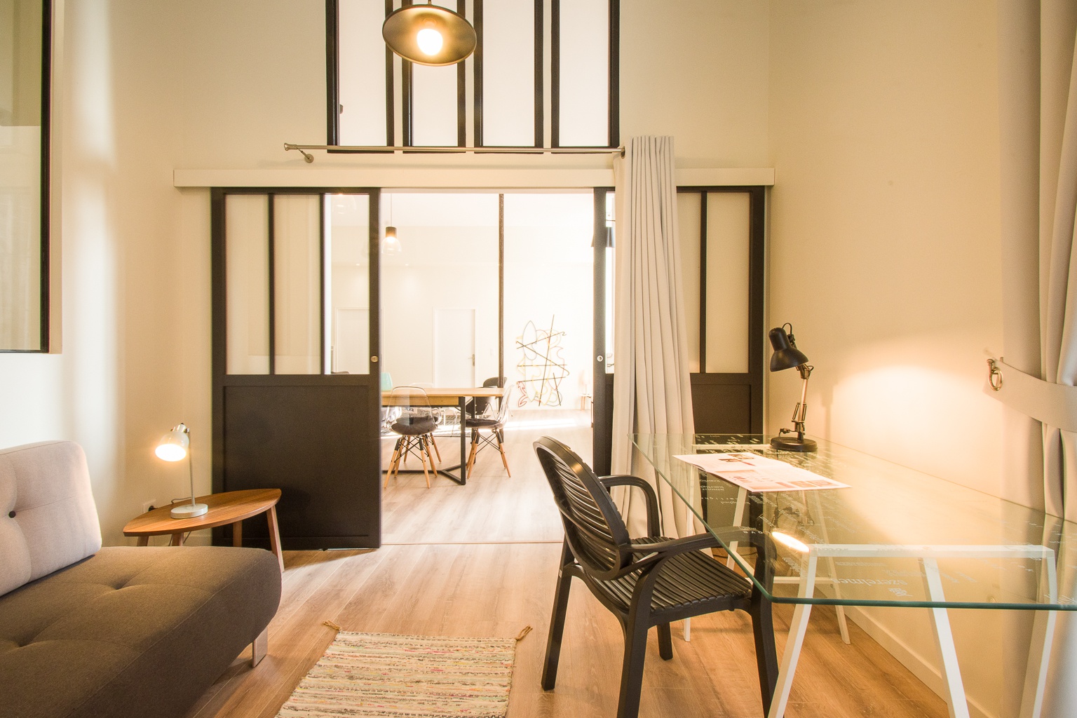 - • The home office doubles as a third bedroom – it's off the living room, separated by sliding doors with a curtain to pull across for privacy