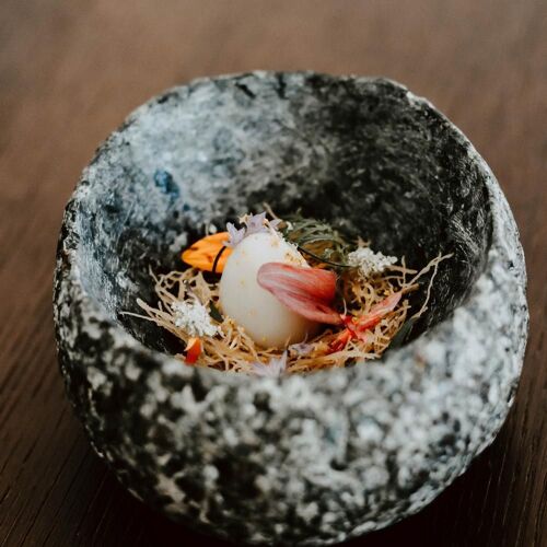 Don't be fooled by Balthazar Gonzalez's young age: his game plan is crystal clear! No more than six tables, a surprise menu at lunchtime and dinner and a scattering of à la carte dishes set the scene, giving free rein to his no-holds barred creativity: buttery baked blue lobster, confit of carrots in lobster stock, nasturtium leaves and oil. The antithesis of fast food, expect to spend up to 3 or 4 hours to do justice to this hedonistic experience. Outstanding, fresh produce, with a preference for vegetables and seafood and explosive flavours with some real show-stopping moments. We can only salute his daring and applaud his talent.