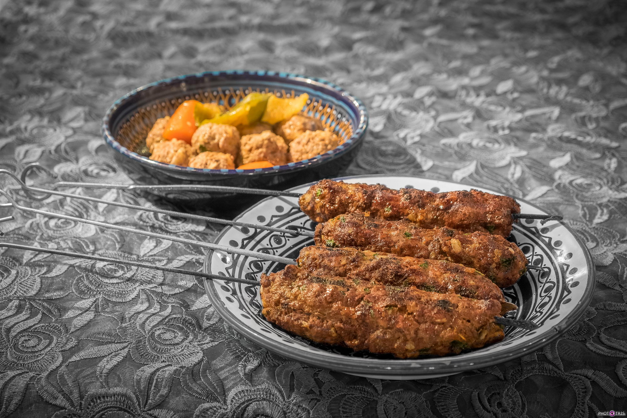 It came with grilled lamb, grilled lamb skewers, exquisitely seasoned meatballs, and a merguez sausage. There were perfumed raisins in a sweet sauce served on the side.