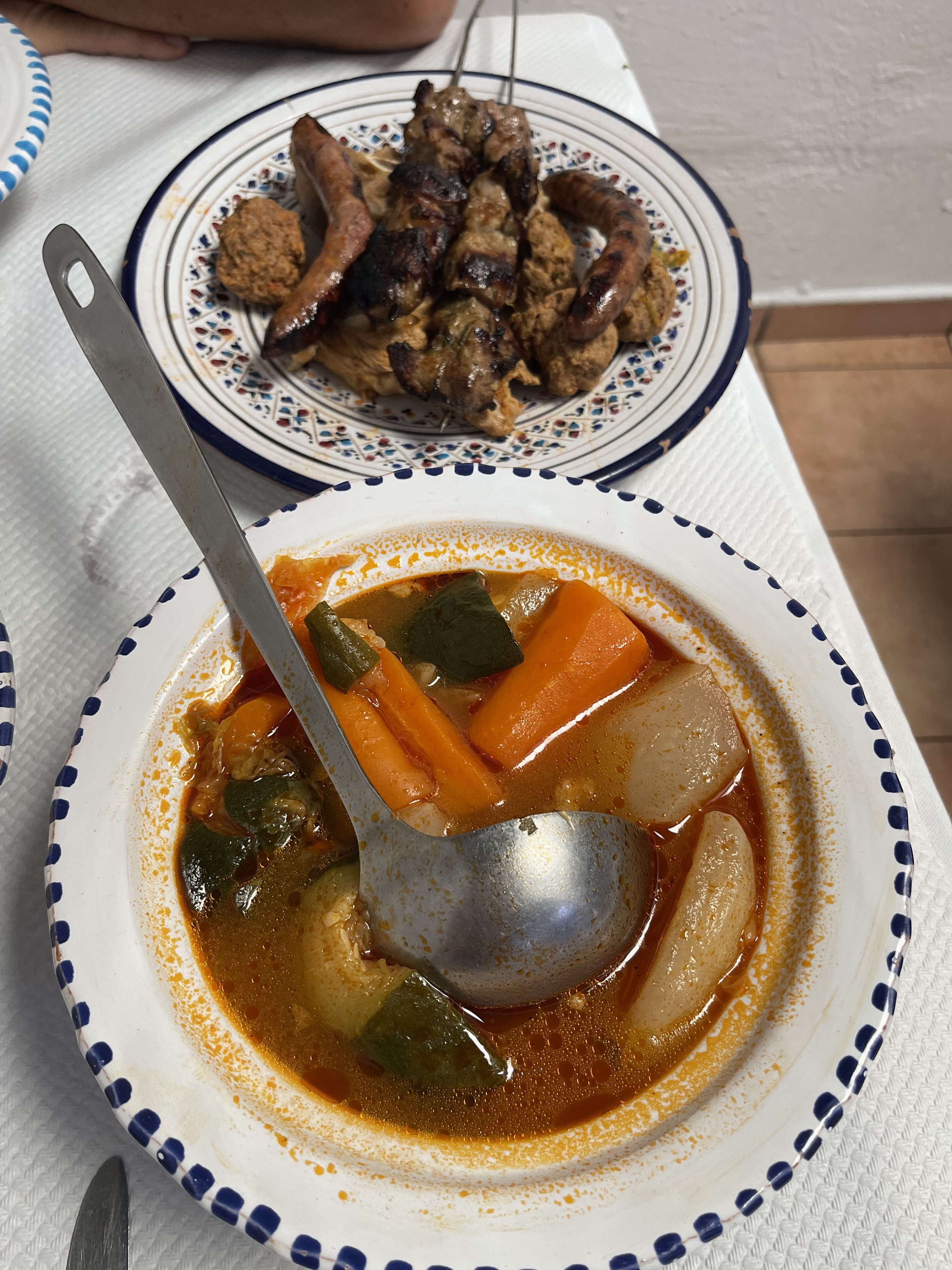 We were able to finish the meat, half the couscous and half of the veggies, though the waiter was kind and let us know if we needed more of veggies and couscous he was happy to bring it.