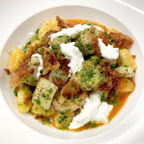 Of Italian and Mediterranean inspiration, this colourful contemporary trattoria, housed in a former art gallery, overlooks a cobbled courtyard. We fell in love with the risotto with French green peas and different textures of guanciale – to die for! Before leaving, pop into the gourmet grocery store and stock up on first-rate Italian goodies.