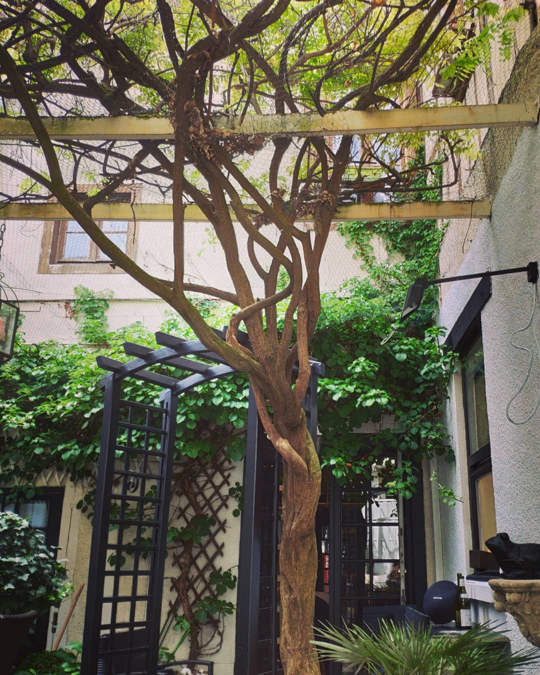 We visited recently. The staff asked if we would like to sit in the outside space. This was through the restaurant and was covered by netting and trees which was a lovely area: outside but inside. The staff were experienced and efficient. The food was delicious. Would definitely go again. Great find off the main streets.