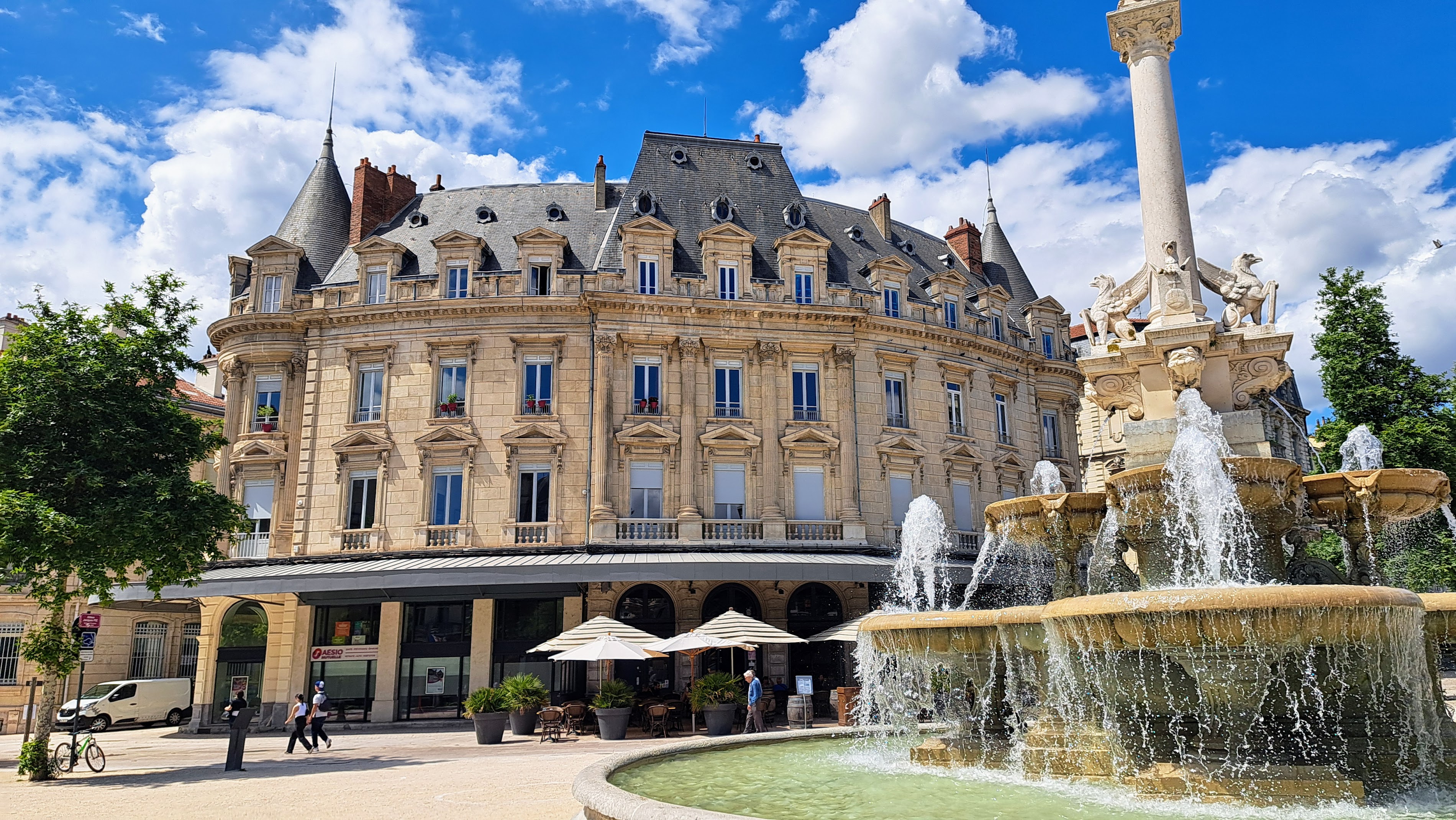 Luxurious place, with great terrace on the boulevard, in front of the big fountain. Reasonable prices, although I find it crazy that all coffee's are more expensive in the afternoon than in the morning!? Good cocktails. Kitchen closes at 14h.