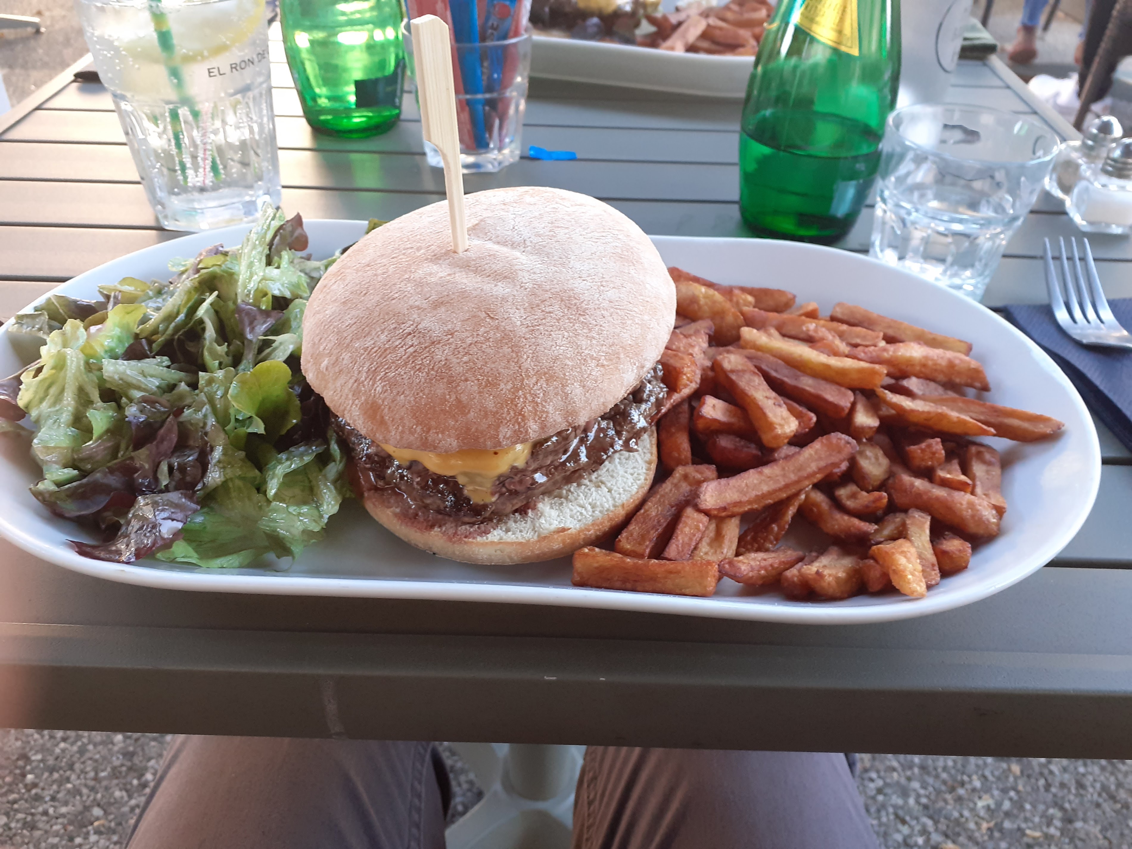 Burger was so greasy that al other food on the plate couldn't be eaten and the steak was rare.