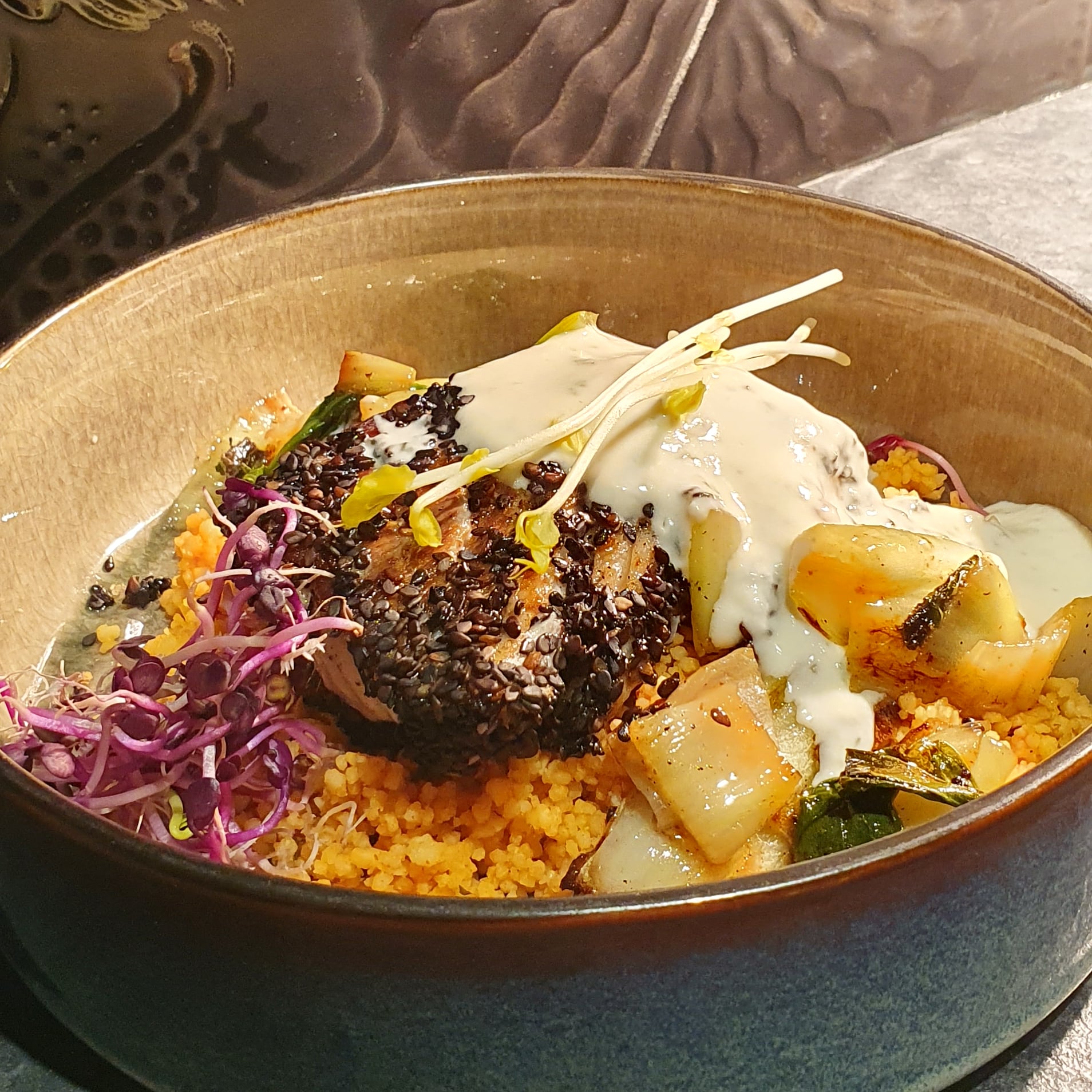 An enthusiastic and friendly young couple, Clément Raby from Paris and Estelle Mercier from the Gard region, have succeeded in turning heads with what they call their “cuisine libre” (“free cooking”). Served in a relaxed setting, this creative, original cuisine is spot on, with recipes that really work and just the right combination of flavours. On their “blind” menus, dishes aren’t announced until after you’ve tasted them so that guests can really give their senses and tastebuds a workout!