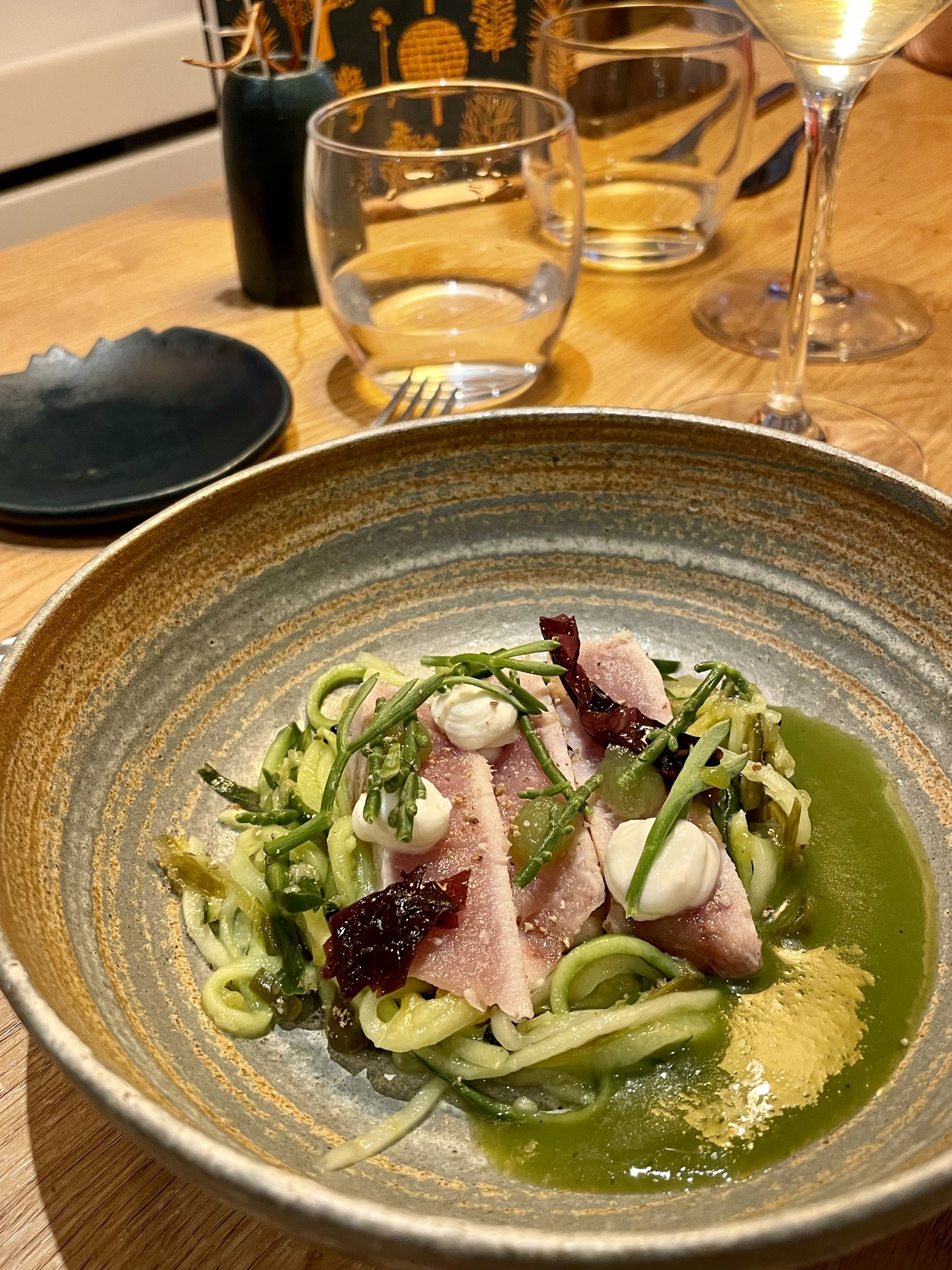 A wonderful little restaurant! We tried the 5 course tasting menu, but we somehow ended up with 8 platings. We also tried the cider, as well as the non-alcoholic accompaniments, which were sometimes surprising, but all well selected. You can really feel the careful attention to detail and the service is impeccable. Great value for money for a special evening!