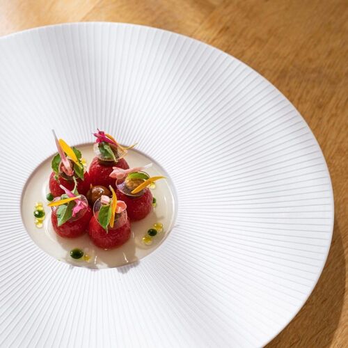 Following his first Michelin star in 2016, chef Jean-Baptiste Lavergne-Morazzani has redoubled his efforts, with the support of a solid and efficient team, to win over many more food-lovers in Versailles. His ethos – a natural approach to everything – is clearly apparent on his concise, no-frills menu with a sharp focus on the seasons and starring natural and sustainable ingredients (mainly organic) fish and meat, along with vegetables from his own kitchen garden. The impressive wine list comprises close to 700 labels, with many produced biodynamically. The exclusive location in the timeless Cour des Senteurs near the castle adds further weight to this unique dining experience.
