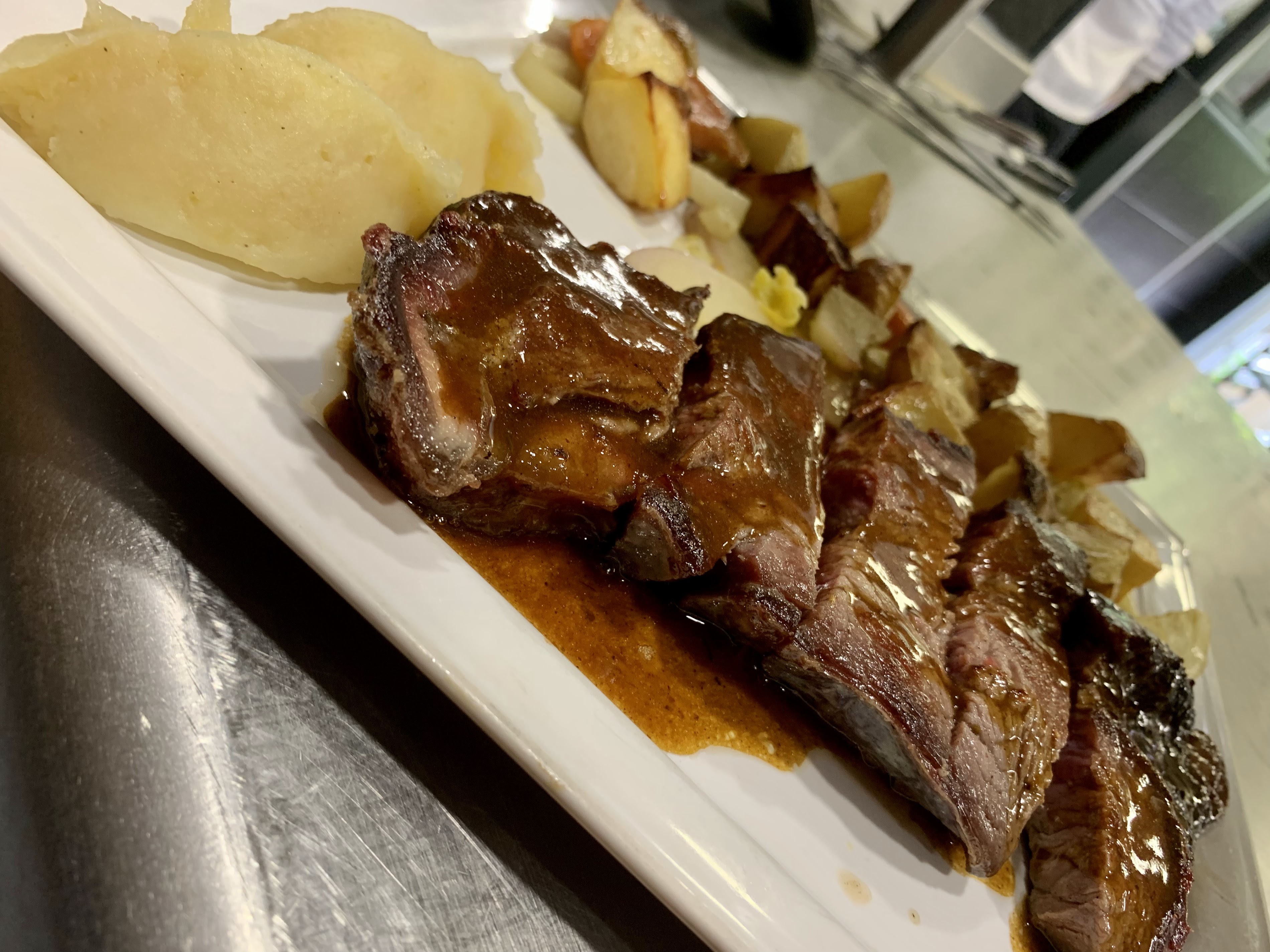 Sat outside on a covered veranda. Quick service and very good food - egg & salmon starter very tasty, roast meats good, served with vegetables. Interesting flavours in the vegetable ravioli, with fennel. Liked the creme brulee.