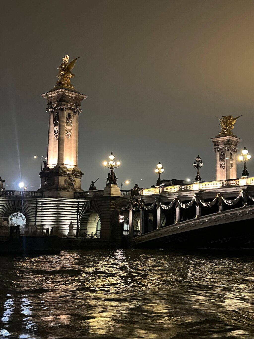 This particularly beautiful bridge was a gift to France from Tsar Alexander III. It's a wonderful experience to pass underneath this structure aboard the fully glass-enclosed boat.
