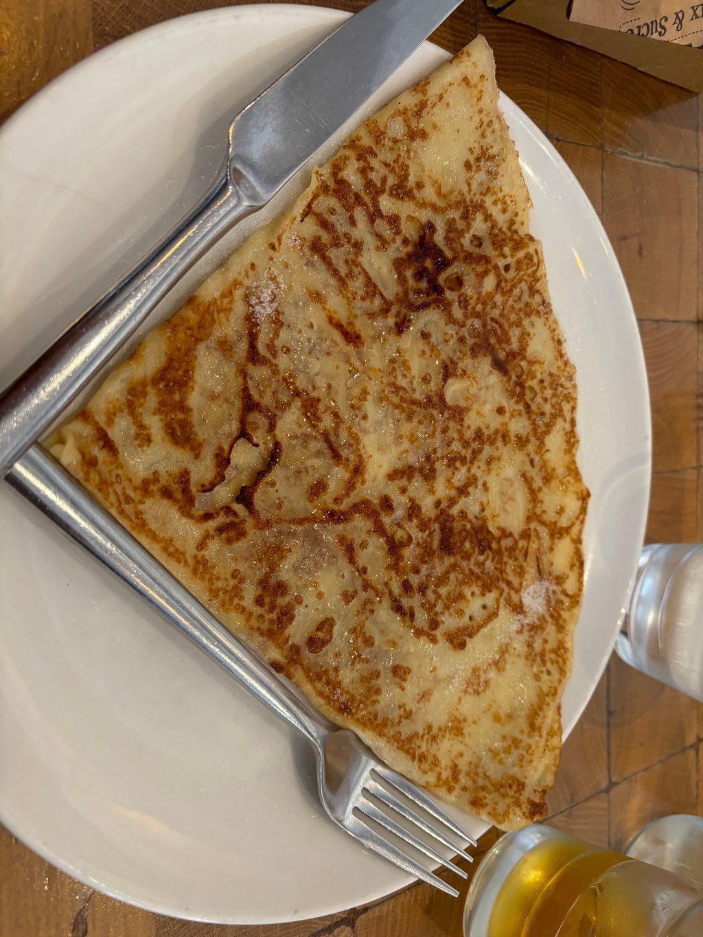 Next, you’ll try a taste of the Brittany region: a traditional French crêpe served with a glass of apple cider.