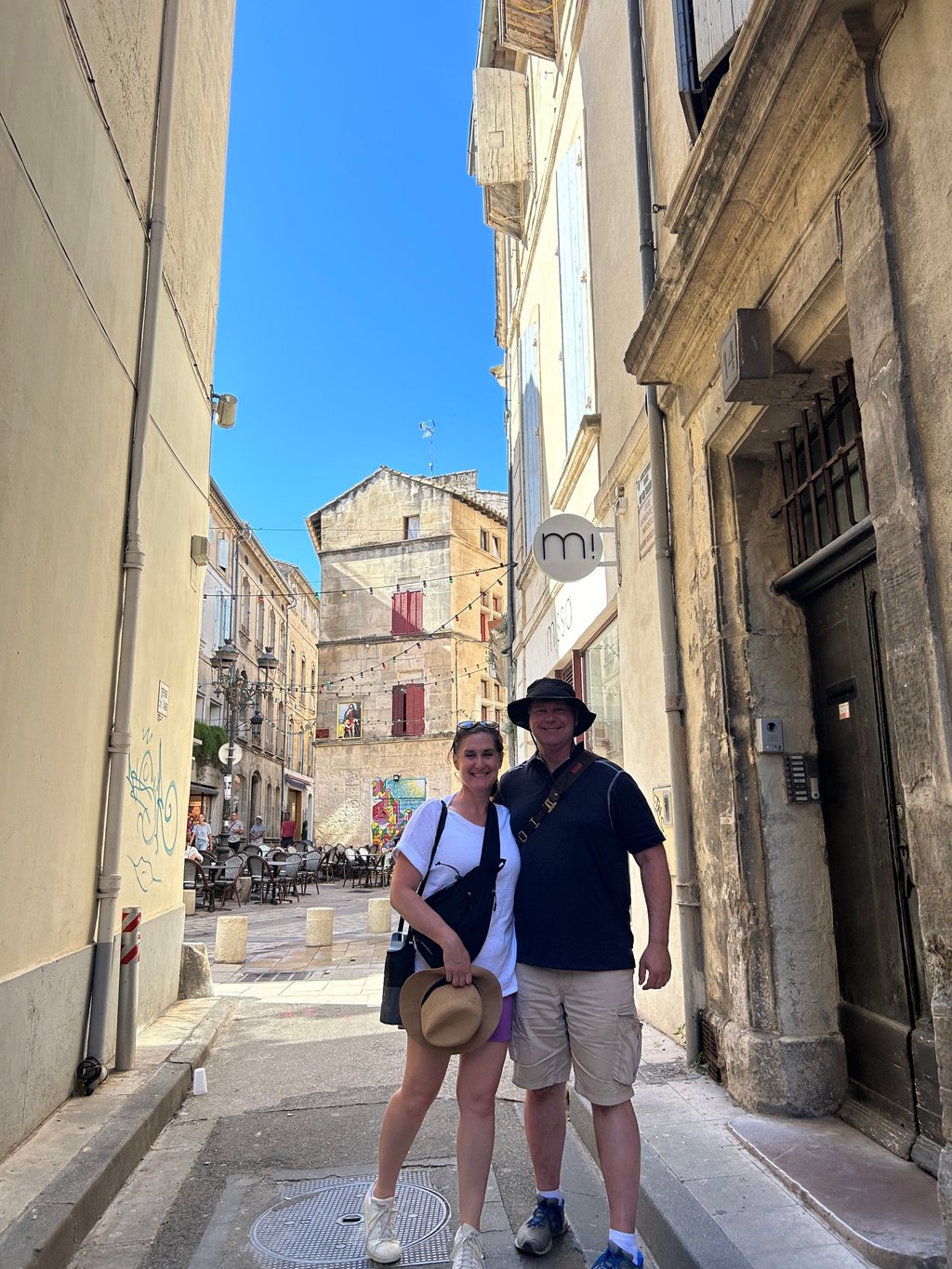 We started the tour in Arles. In addition to the Roman attractions, the Ophorus website states, “ Step into the world of Vincent Van Gogh as you trace his artistic journey during his stay in Arles between 1888 and 1889. Discover the locations where he found inspiration through panels showcasing his paintings.” Our guide only took us to one spot where Van Gogh was said to create a painting. I asked about the Van Gogh panel sites all over town. The guide said there was no such thing. On our free time, I found them myself and took pictures and came back and showed them to her. When I mentioned what the tour website said about Van Gogh locations, the tour guide said she doesn’t know what’s on the website, rather she is told to do her own tour.