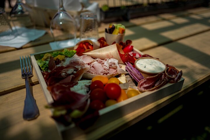 After the tasting, you'll sit down for a Private lunch with the winemaker himself, surrounded by the beauty of the vineyard. Indulge in a feast of fresh, authentic French cuisine—succulent meats, artisanal cheeses, organic fruits and vegetables, rich foie gras, and freshly baked gastronomic bread. As you savour each bite, sip on the wine of your choice, perfectly paired with your meal. Throughout the lunch, enjoy stories and Tales from a french winemaker, gaining a deeper understanding of his cr