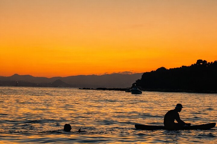 While other tours are rushed back to Cannes, the lagoon is left to you alone. The crowds are seen to disappear. The water is transformed into a mirror of fire and gold. The Estérel mountains are bathe...