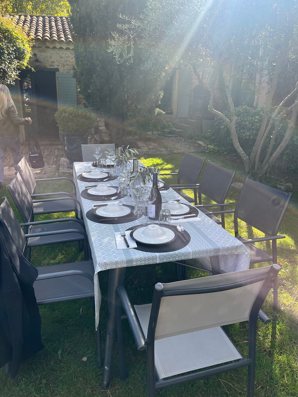 Kelly & Philippe were gracious hosts welcoming a fairly large group of us to their stunning home. Our visit started with a lesson by Elizabeth Bard, a NY Times best selling author, teaching us how to put together a charcuterie board. Once our boards were completed we were able to enjoy the fruits of our labor along with wine tasting from a local vineyard all this while overlooking the beautiful French countryside. Then it was onto our cooking class where one group prepared tapenade while the other prepared an apple rosette dessert. We were all then treated to a delicious classic Provençal duck dish prepared by Philippe.