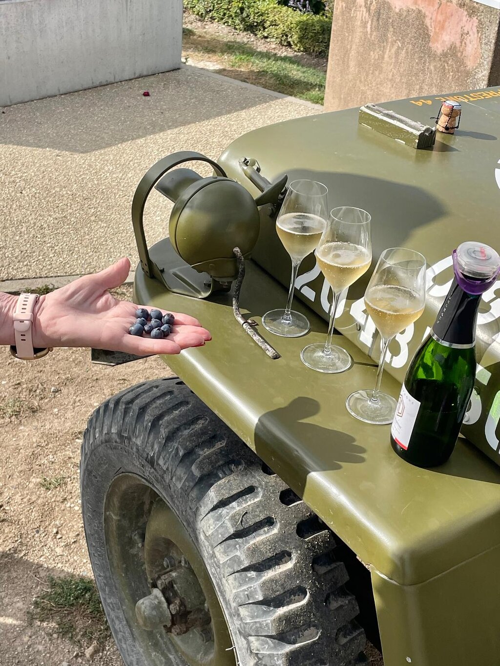 He had found a old 1944 war time jeep and spent seven years bringing into full road condition. Would only take three passengers and we were two so very personal. Jeeps were used widely in vineyards as a way of getting around and for transport after the war. Nichola is a born and bred local who has spent his young life so far in all aspects of champagne production. We learnt so much and enjoyed his company and the bottke of champagne we shared at the end. Couldn'trecommend this more highly.