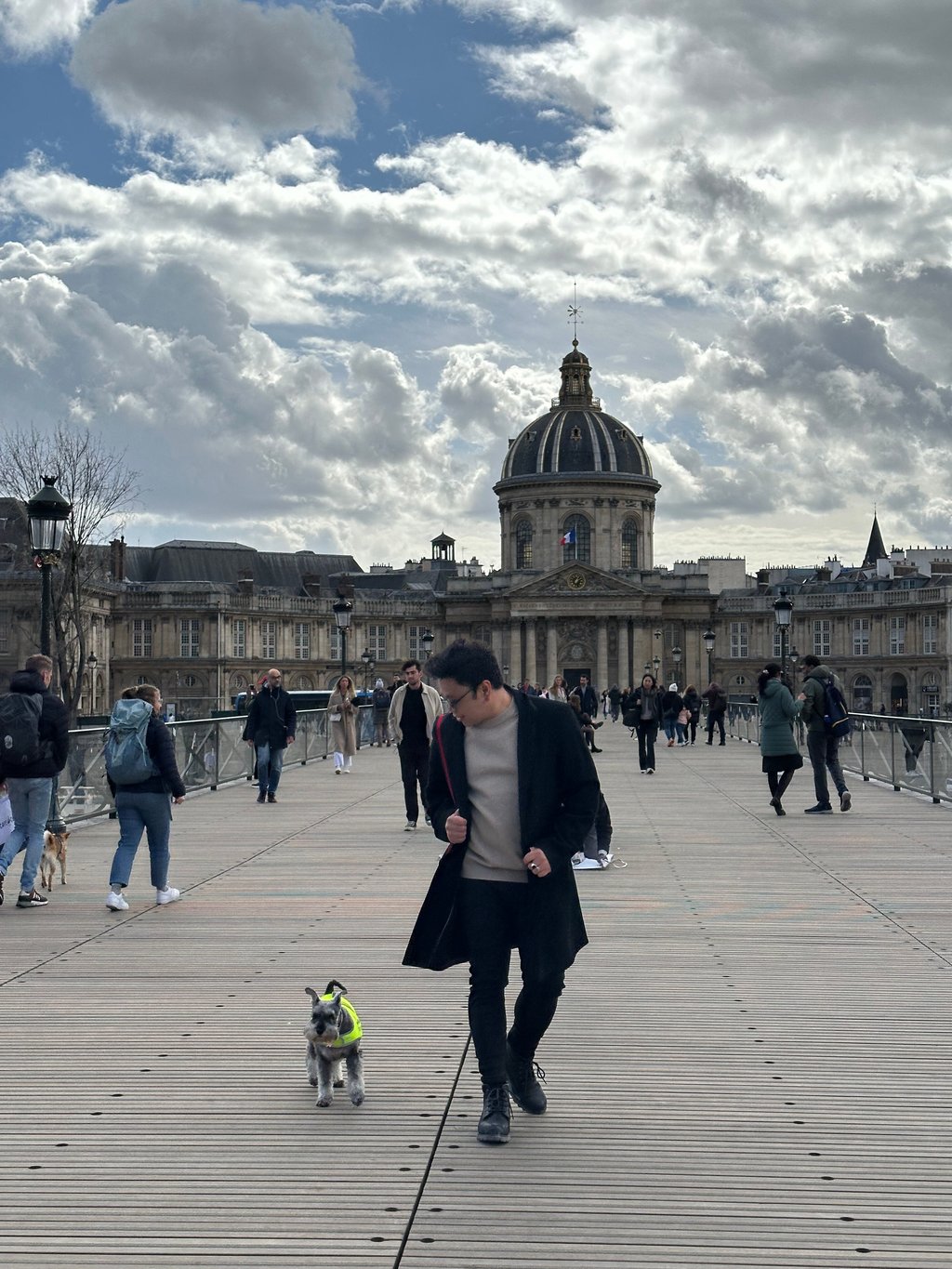 A very beautiful little wood and iron bridge , with the most wonderful historic view of Paris and a bohemian bridge
