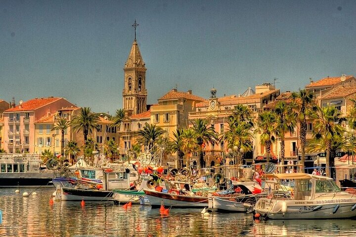 Meet your guide at the Port of Sanary sur Mer. Located in the heart of Provence and facing the bay of Toulon, this small coastal paradise offers a mix of authenticity and picturesque charm. Thanks to your passionate private guide, discover the well-kept secrets of the history of Sanary sur Mer. Stroll along the port, and discover one of the most typical small fishing ports of the French Mediterranean coast. Sanary has preserved the traditions of the past with its famous «pointus» of Provence, small Provencal boats with multiple colors lined up along the Port. Let yourself be guided to the Provençal city center, with its colorful facades and lively streets, and stroll through its Provencal market (every mornings during high season), a meeting place between local people and producers, farmers and fishermen. Far from the bustle of the port, get off the beaten track by following your guide to small secret alleys. Climb up to the tower and admire the breathtaking view of the city.