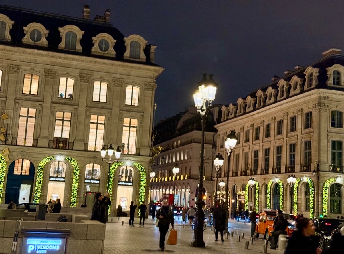 The most luxurious square in Paris built in the 17th century during the reign of Louis 14. Beautifully decorated for Christmas.