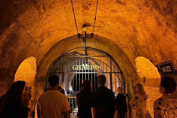 Tour of the underground cellars of the prestigious Maison de Champagne Mumm in Reims
